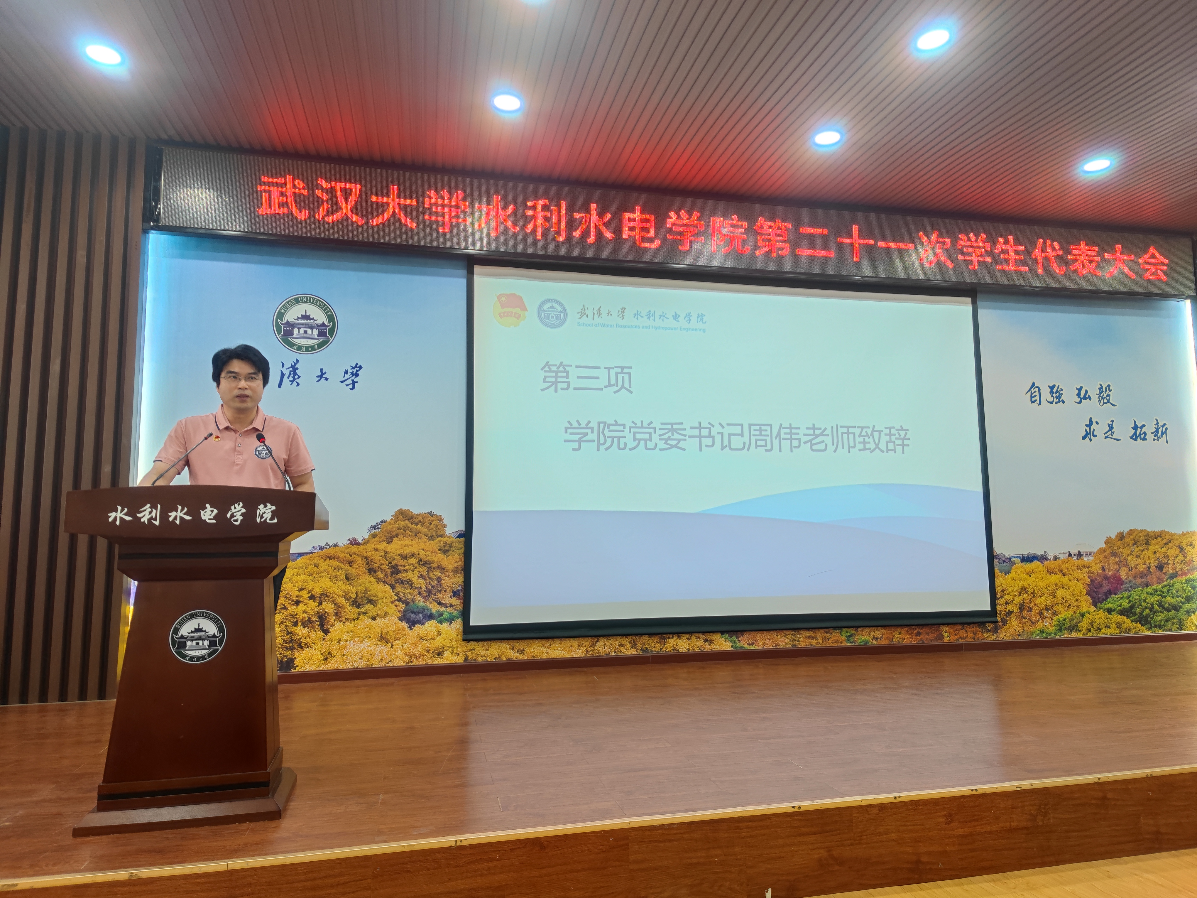 大会在激昂的国歌声中正式拉开帷幕。校团委副书记韩琦首先致辞,从学校团委的角度向学院学生会一年来取得的成绩表示祝贺,并对今后的工作提出了新的希望和要求。随后学院党委书记周伟教授致辞,他对过去一年学院学生会取得的优异成绩表示肯定,提出学生骨干应当涵养志存高远、胸怀复兴的情怀;锤炼拒绝躺平、矢志奋斗的思想;培育锐意进取、开拓创新的品格。同时他还强调,学生骨干要始终致力于更好地为同学服务,加强学风建设,提升科研能力,在新征程中,塑造新时代学生组织的崭新形象。