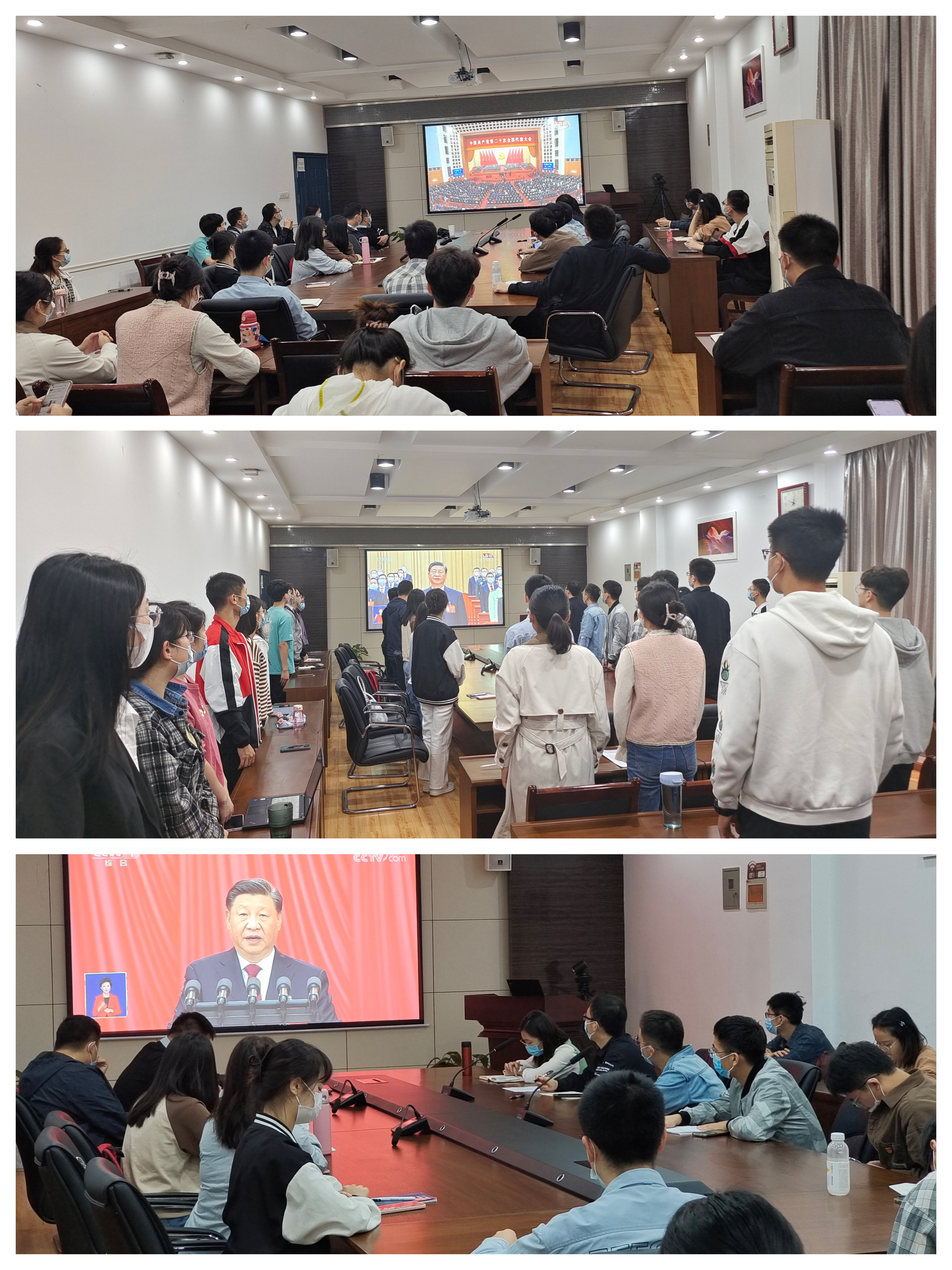2022年10月16日,中国共产党第二十次全国代表大会在京隆重开幕。350vip浦京集团官方授权和国重班子成员、党委委员、各支部书记、系主任、内设机构主任副主任、全体学生党员在6个会议室集中收看党的二十大开幕会直播,其他党员和团员自主观看线上直播。
