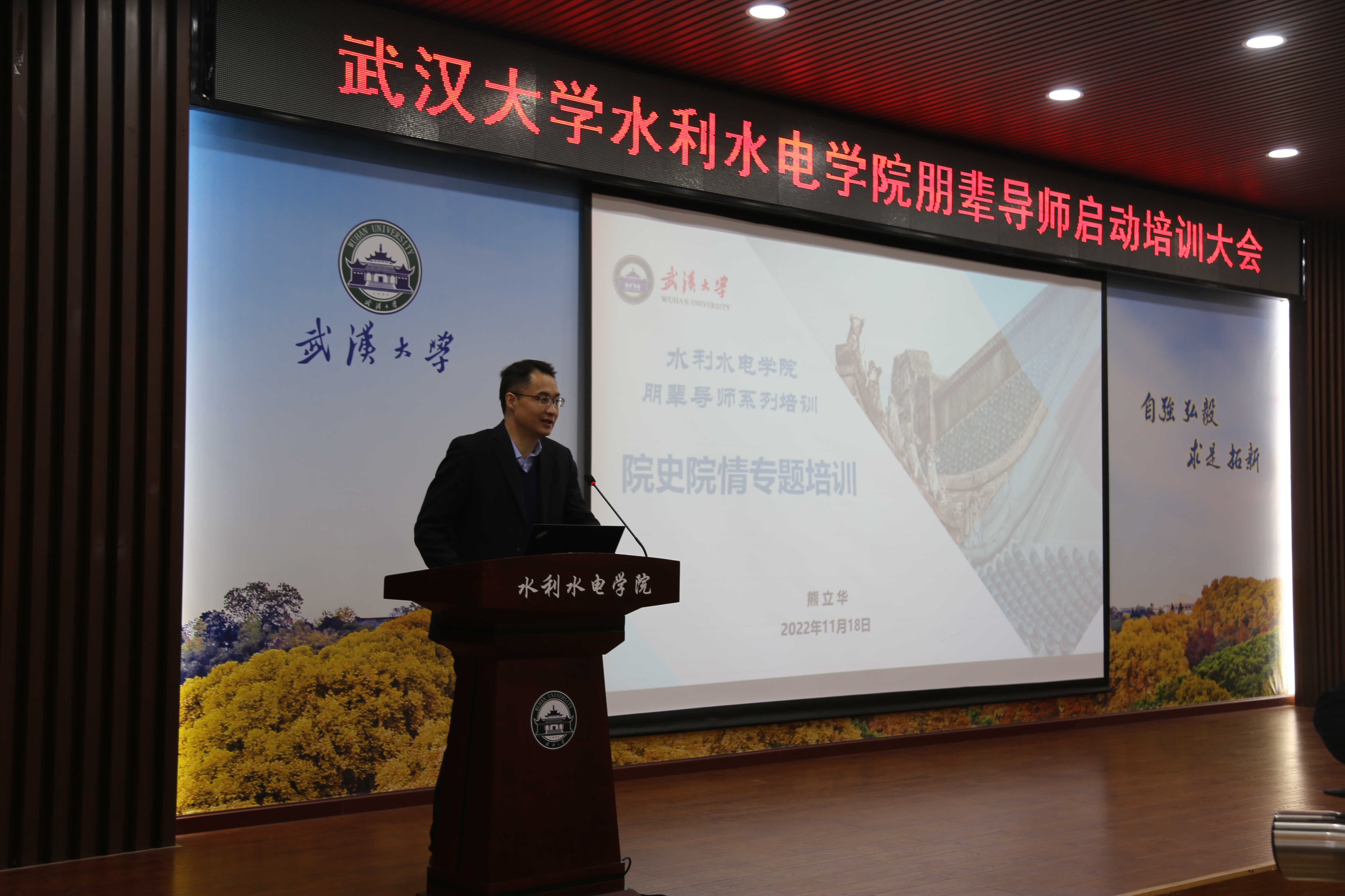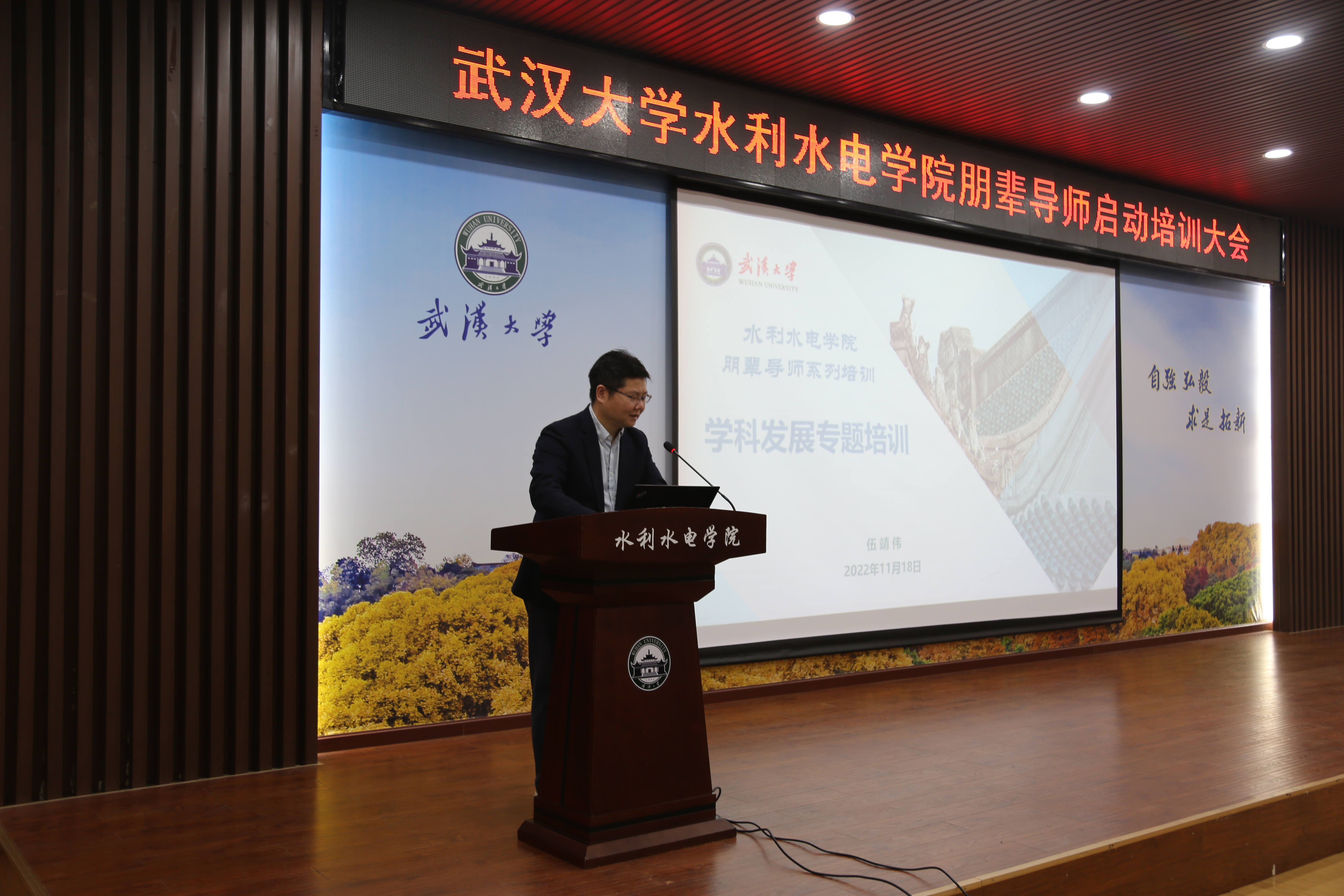 伍靖伟作“学科发展”专题培训,从什么是学科展开,介绍了浦京集团官网历史悠久、实力雄厚、特点突出的水利学科,并展示了近年来学院的代表性学术成果,对学科未来的发展前景作出生动解读。